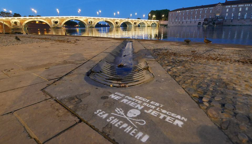 Dans la nuit du 7 au 8 juin 2018, des bénévoles de l’organisation non gouvernementale internationale maritime vouée à la protection des océans Sea Shepherd ont mené une opération de street art, à Paris, Strasbourg, Lyon, Marseille, La Grande Motte, Tours et Lille.