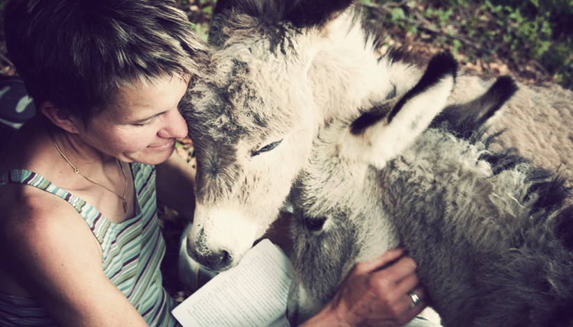Depuis l’enfance, j’ai toujours rêvé de vivre avec les ânes. J’adore cet animal ! c’est viscéral : je l’ai dans la peau …. Mon mari et les gens qui me connaissent m’offrent des ânes en peluche et puis à 40 ans, mes deux premiers ânons Tibet et Timousse sont venus ouvrir mon horizon.