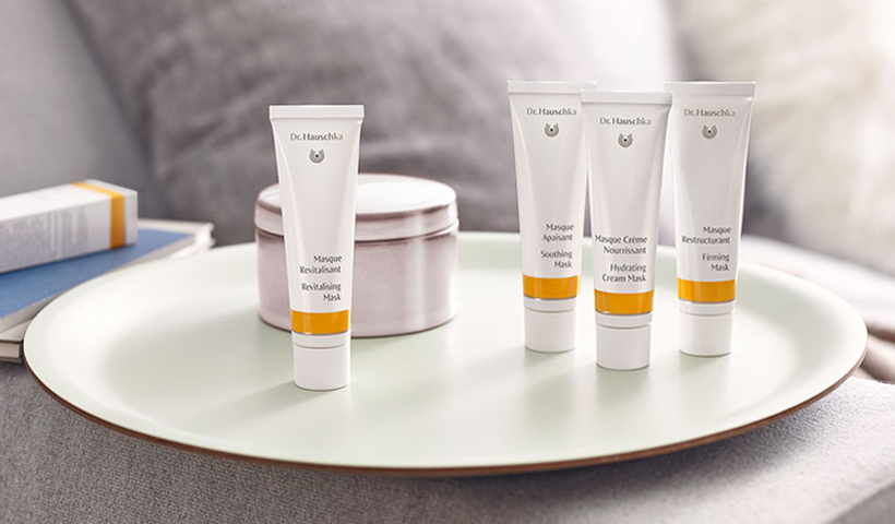 Retrouvez les 4 masques (5 ml chacun) Dr HAUSCHKA dans un COFFRET DECOUVERTE à emporter partout.