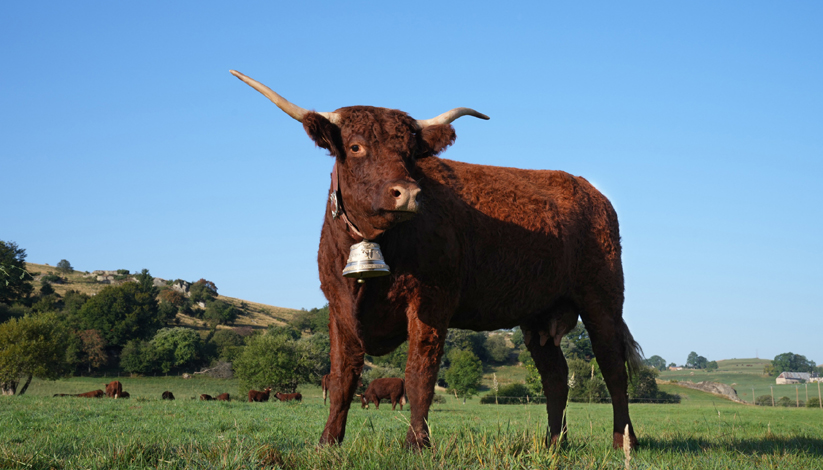 Avec sa robe acajou sans imperfections, ses fines cornes claires en forme de lyre, cette Salers de 5 ans a de quoi séduire. L’Auvergne, et plus précisément le Cantal, est le berceau d’origine de la Salers, une race qui a vu le jour à Salers, petit village du Cantal perché à 1000 m d’altitude qui lui a donné son nom. Avec ses capacités d’adaptation, cette race rustique, utilisée pour son lait et sa viande, est parfaitement adaptée aux enjeux sociétaux actuels.